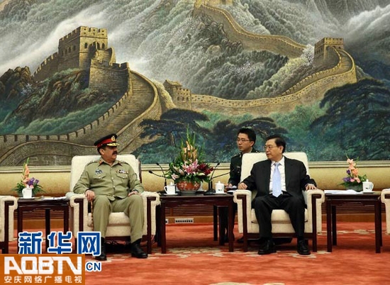 6月5日,全國(guó)人大常委會(huì)委員長(zhǎng)張德江在北京人民大會(huì)堂會(huì)見巴基斯坦陸軍參謀長(zhǎng)拉希勒。 新華社記者 劉衛(wèi)兵 攝