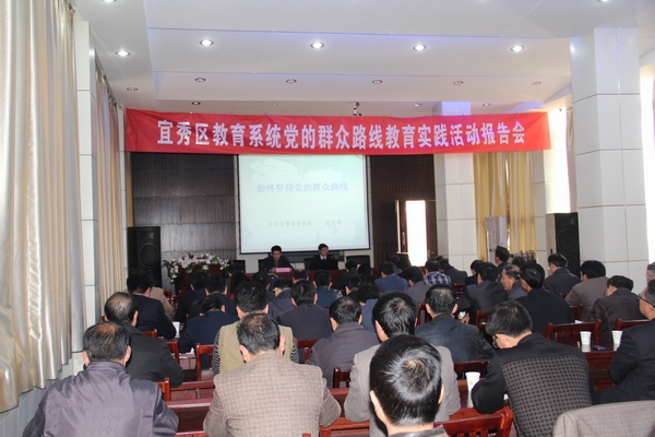 會議要求,認(rèn)真組織開展群眾路線教育實踐活動,對于著力解決領(lǐng)導(dǎo)干部作風(fēng)方面存在的突出問題,凝聚廣大人民群眾的智慧和力量,加快推進(jìn)宜秀教育發(fā)展建設(shè),具有重要意義。各單位、各部門要抓緊傳達(dá)和學(xué)習(xí)報告會精神,把群眾路線教育實踐活動抓緊抓好抓實。