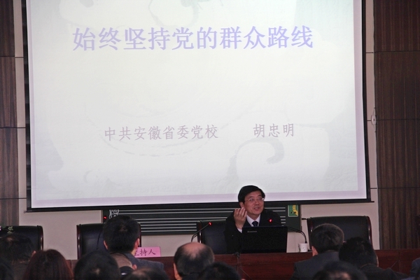 3月23日下午,宜秀區(qū)教育系統(tǒng)舉辦黨的群眾路線教育實踐活動專題報告會,區(qū)委常委、副區(qū)長胡忠明作了題為《始終堅持黨的群眾路線》的報告。