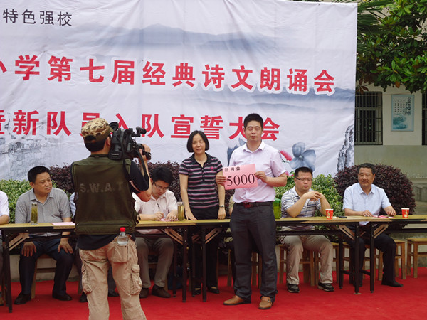 活動在羅嶺中心學(xué)校校長金和常的開幕詞中拉開序幕,他希望該校的全體師生,堅定不移地走個性化、特色化和文化立校的內(nèi)涵式發(fā)展之路,并通過誦讀活動的開展使學(xué)校的辦學(xué)品位不斷提升,品牌效應(yīng)不斷顯現(xiàn)。之后,民政局領(lǐng)導(dǎo)向林春小學(xué)捐贈了5000元的慰問金,此舉是踐行黨的群眾路線活動的具體行動,深深地感動了學(xué)校的每位師生。接著,徐永生書記對關(guān)心支持教育的各級領(lǐng)導(dǎo) 及社會各界人士表示衷心的感謝,并鄭重宣布本次活動開幕。之后,匯演活動正式開始,師生們同臺演出,他們把對詩詞的熱愛、理解、追求,或誦、或演、或唱、或舞地表達(dá)出來。精彩紛呈的節(jié)目,博得了領(lǐng)導(dǎo)嘉賓們的陣陣喝彩,會場上不斷地響起了雷鳴般的掌聲。最后,領(lǐng)導(dǎo)們與演出代表合影留念。