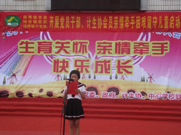 為切實踐行黨的群眾路線教育實踐活動,楊橋鎮(zhèn)黨委、政府、鎮(zhèn)計劃生育協(xié)會、楊橋鎮(zhèn)中心學(xué)校在“六一”兒童節(jié)來臨之際,于5月28日下午在中心學(xué)校開展幫扶困難留守兒童專項活動。區(qū)委常委、區(qū)宣傳部部長朱學(xué)云、區(qū)關(guān)工委、區(qū)人口計生委、區(qū)教育局領(lǐng)導(dǎo)及鎮(zhèn)黨政班子成員參加活動。