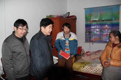 在兩位貧困大學(xué)生家中,婁雪松很關(guān)切地詢問他們的學(xué)習(xí)情況和家庭情況,認(rèn)真傾聽他們的希望和要求,鼓勵他們要對生活樹立信心,要克服困難,勉勵他們在大學(xué)里要發(fā)揚(yáng)勤奮學(xué)習(xí)、頑強(qiáng)拼搏的精神,發(fā)奮圖強(qiáng),刻苦學(xué)習(xí),早日成才,為家鄉(xiāng)爭光,為父母解憂,并送上新春的祝福。同時要求在場的相關(guān)部門負(fù)責(zé)同志要多關(guān)心轄區(qū)內(nèi)的貧困群體,多幫助解決生活中的實(shí)際困難。