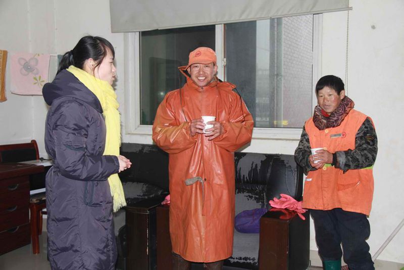 上午九時(shí),安慶常州天安物業(yè)環(huán)衛(wèi)工人汪步發(fā)、曾凡霞保潔至安慶大橋開發(fā)區(qū)管委會(huì)門前時(shí),又和往常一樣,徑直走進(jìn)管委會(huì)為他們設(shè)立的“愛心休息站”稍作休息。汪步發(fā)、曾凡霞凌晨六點(diǎn)就上崗,對(duì)自己負(fù)責(zé)的龍眠山路高速口至緯五路的路面已經(jīng)巡查保潔了兩圈。高速口至緯五路路段空曠,沿途單位及建筑物相對(duì)較少,平時(shí)歇個(gè)腳、沖點(diǎn)熱水都不方便。自從2013年4月安慶大橋開發(fā)區(qū)管委會(huì)設(shè)立“愛心休息站”以后,他們有了一個(gè)可以休憩的“臨時(shí)的家”,遇到嚴(yán)寒酷暑,管委會(huì)的干部職工還主動(dòng)邀請(qǐng)他們進(jìn)來休息,為他們提供相關(guān)藥品、熱水。一杯熱茶,驅(qū)走勤勞淳樸的環(huán)衛(wèi)工人身上嚴(yán)寒,一個(gè)笑臉,把愛的暖流傳遞到他們的心頭。這些熱心的行為,讓他們真切感受到作為一名勞動(dòng)者所獲得的尊重! 江義學(xué)攝影報(bào)道
