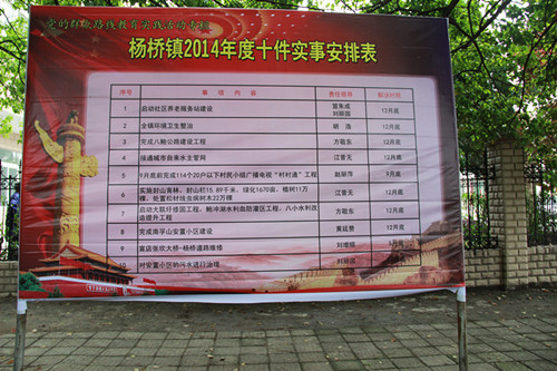 為了將2014年廣播電視“村村通”工程做實做好、做出亮點(diǎn),自年初開始,楊橋鎮(zhèn)就嚴(yán)格按照要求,科學(xué)制定實施方案。在扎實做好前期動員宣傳工作的同時,結(jié)合黨的群眾路線教育實踐活動,將楊橋鎮(zhèn)廣播電視“村村通”民生工程納入2014年全鎮(zhèn)為民十件實事計劃,公開對全鎮(zhèn)人民承諾,切實做到“三個明確”,即明確工作任務(wù)、明確完工時間、明確責(zé)任人。