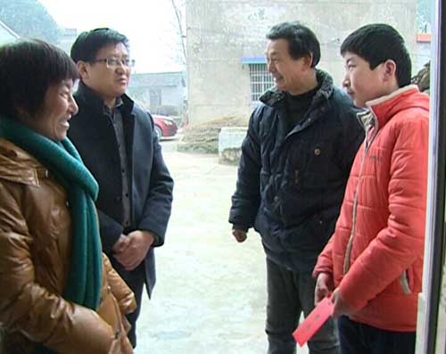 1月18日下午,區(qū)委常委、宣傳部長余永燦和結(jié)對(duì)幫扶“愛心媽媽”區(qū)人社局副局長戴麗萍來到羅嶺鎮(zhèn)花元村,看望慰問結(jié)對(duì)幫扶孤兒朱巖。
