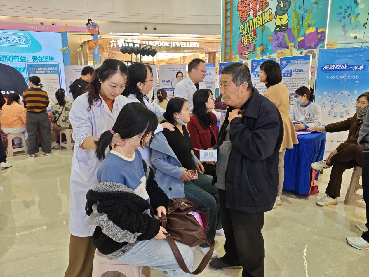 “我有多甜”測試區(qū)前,醫(yī)務人員有條不紊地為市民免費檢測血糖、血壓,提供BMI及體成分分析服務,市一院內分泌科醫(yī)生與營養(yǎng)師現場坐診,一對一解答飲食調理、用藥指導等問題。“甜蜜的煩惱”體驗區(qū)里,專家結合案例詳解糖尿病足、視網膜病變等并發(fā)癥的危害與防控知識,讓市民直觀認識到規(guī)范管理血糖的重要性。“煩惱解壓”義診區(qū)則匯聚了市一院中醫(yī)科、康復科、眼科等多科室專家,為有需要的市民提供針對性診療建議,切實解決健康難題。